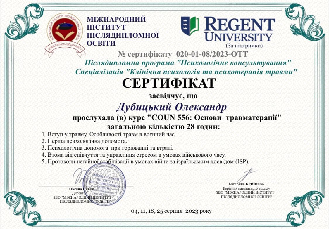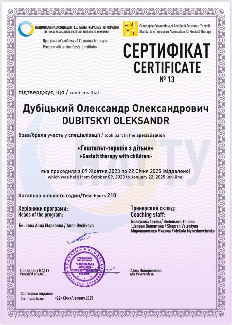 Я практикуючий психолог, психотерапевт. Досвід роботи більше 6 років. Працюю з дорослими та дітьми від 10 років."