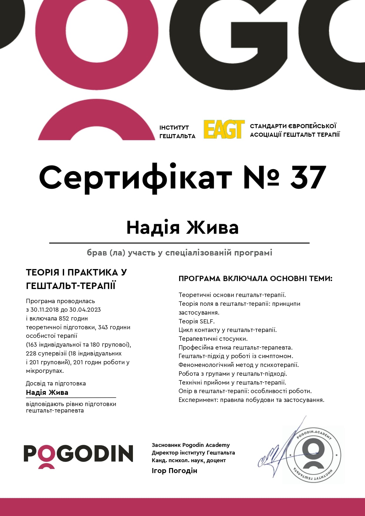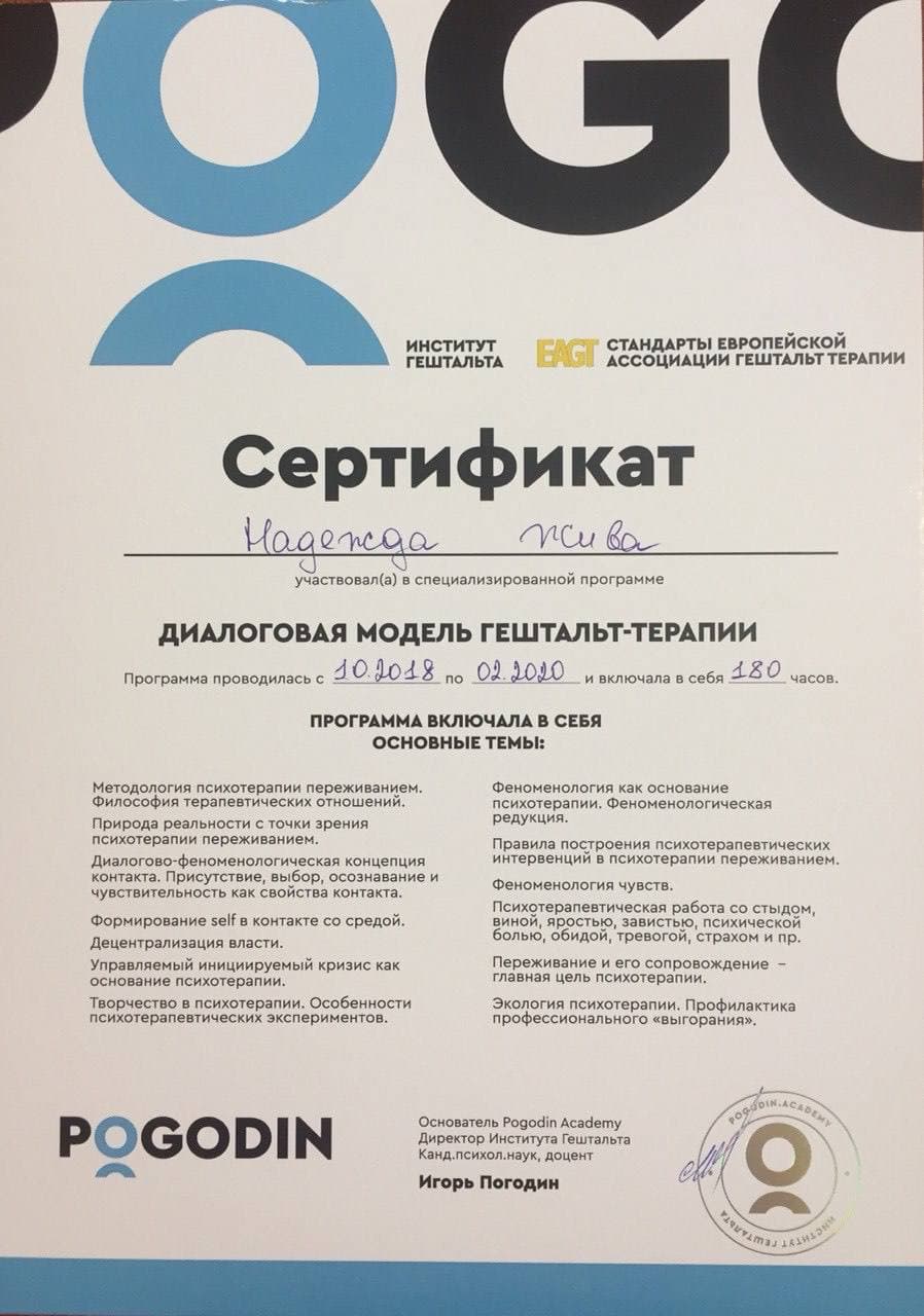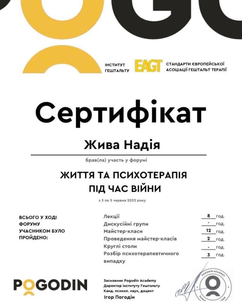 "Вітаю! Я — Надія Жива, дипломований психолог і сертифікований психотерапевт.
