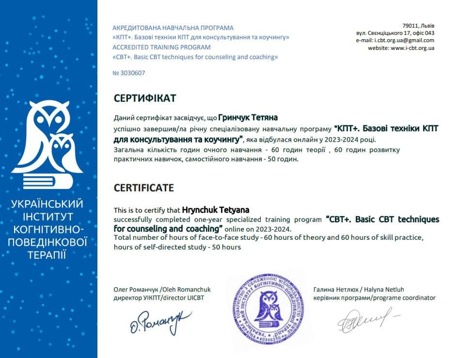 Я психолог, кризовий і трансформаційний коуч.